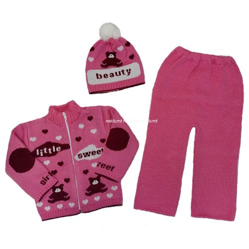 "МоёДитё" костюм для девочки из 3-х предметов "Мишки" коралл "Лотос"